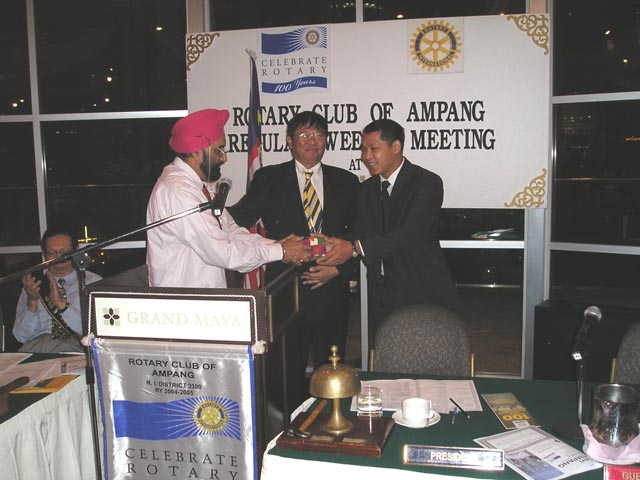 17/05/2005: NANOPAC’s CEO Dato’ Dr. Cheng Kok Leong received a souvenir after giving a talk on Nanotechnology to the Rotary Club of Ampang.