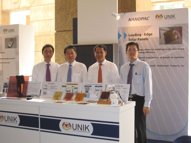18/4/2011: NANOPAC’s booth at the New Wealth Creation and Ecosystem Initiatives Through Innovation. In the picture from the left: Mr. Yoon (R&D Director), Dr. Lee Tai Kyu (Technical Chairman), Dato’ Dr. Cheng Kok Leong (CEO) and Mr. Jeff Ho (Business Development & Technical Manager).