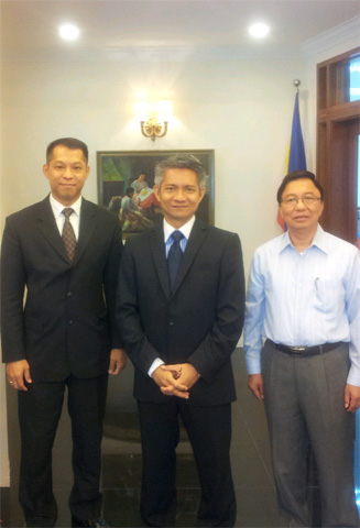 1/6/2012: A courtesy visit to the Embassy of Phillipine in Malaysia. In the picture (from the left): Dato’ Dr. Cheng Kok Leong (CEO, Nanopac), His Excellency Mr Eduardo Malaya (Philippine Ambassador to Malaysia) and Mr. Arnaldo SM Avellaneda (MD, Chase-Makros Management, Inc.)
