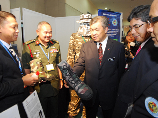 21/4/2010: NANOPAC’s CEO, Dato’ Dr. Cheng Kok Leong presented Nanopac’s latest product, Nano-Hybrid Army Boots to the Minister of Defence, Dato’ Seri Dr. Ahmad Zahid Hamidi at the Defence Service Asia 2010 . Looking on in between is the current Deputy Chief of Malaysian Army, Lt. Jen. Dato’ Pahlawan Hj. Zulkifli B. Hj Zainal Abidin.