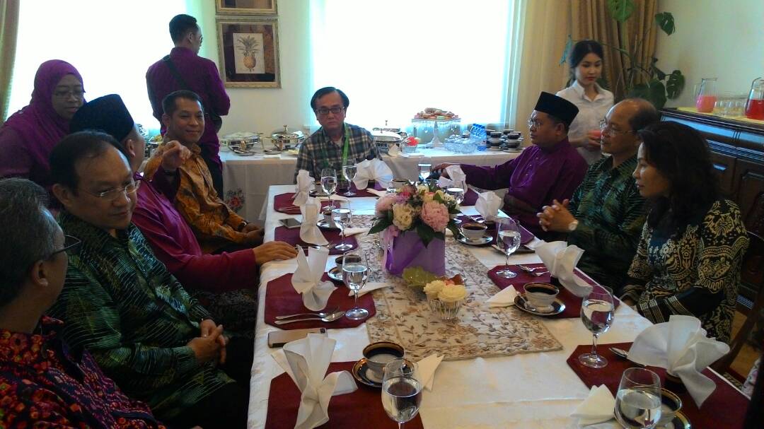 25/6/2017: Hari Raya Aidilfitri lunch in the official residence of Malaysian Ambassador in Kazakhstan. Nanopac CEO Dato’ Dr. Cheng was seated at the VIP table together with host Malaysian Ambassador to Kazakhstan His Excellency Syed Mohamad Bakri Syed Abd Rahman and spouse. Also joining the lunch were Indonesian Ambassador to Kazakhstan His Excellency Rachmat Pramono, MOSTI Minister YB Datuk Seri Panglima Wilfred Madius Tangau and spouse, KETTHA TKSU Dato’ Dr. Tan Yew Chong and project director from Bioeconomy, Mr Zainal Azman Abu Kasim.
